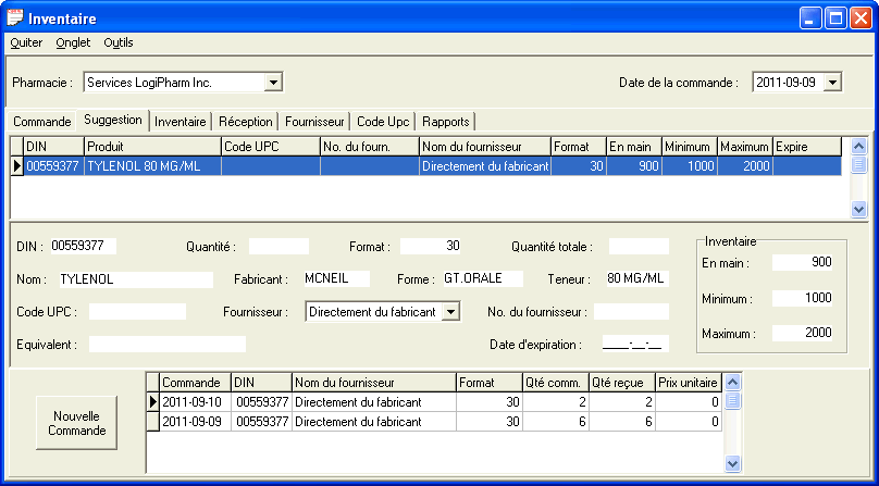 Affiche la liste des produits dont la quantité en inventaire est inférieure à la quantité minimum établie.